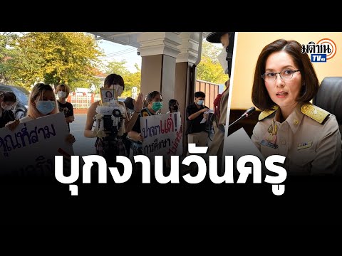 วันครูเดือด! กลุ่มนักเรียนบุก ก.ศึกษาฯนำพานสีดำประดับดอกไม้จันทน์ มาไหว้ รมว.ตรีนุช